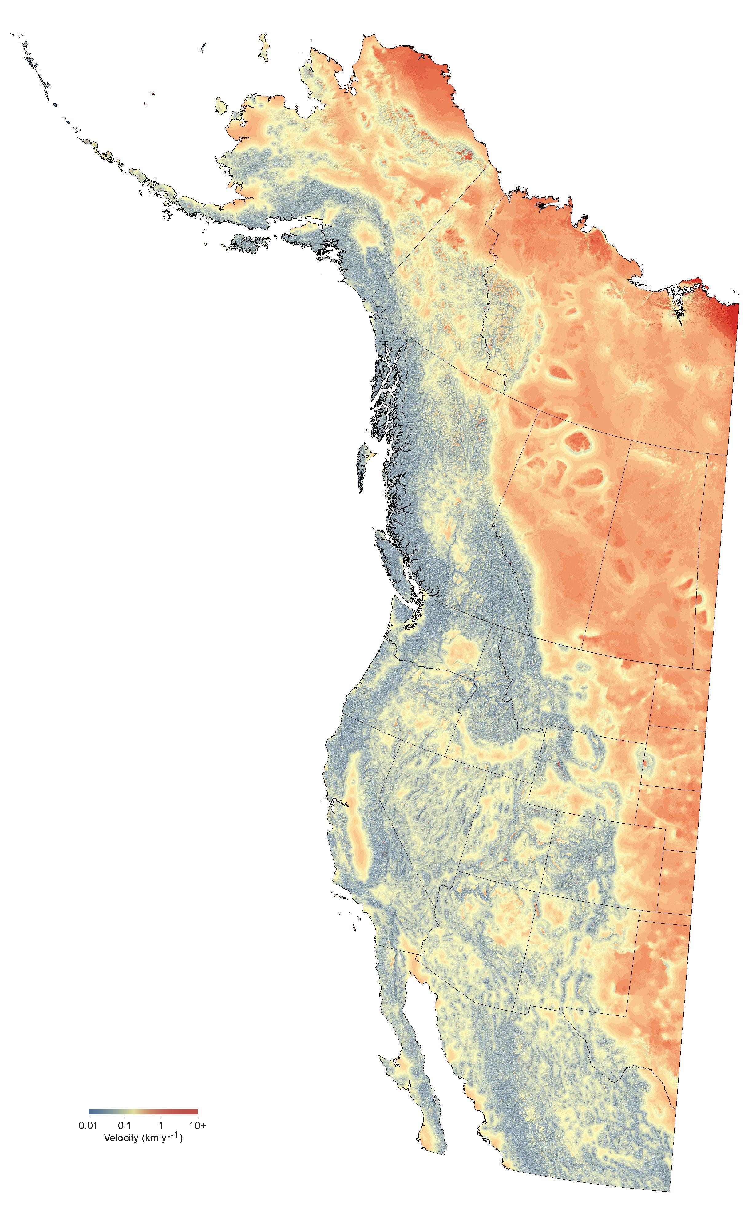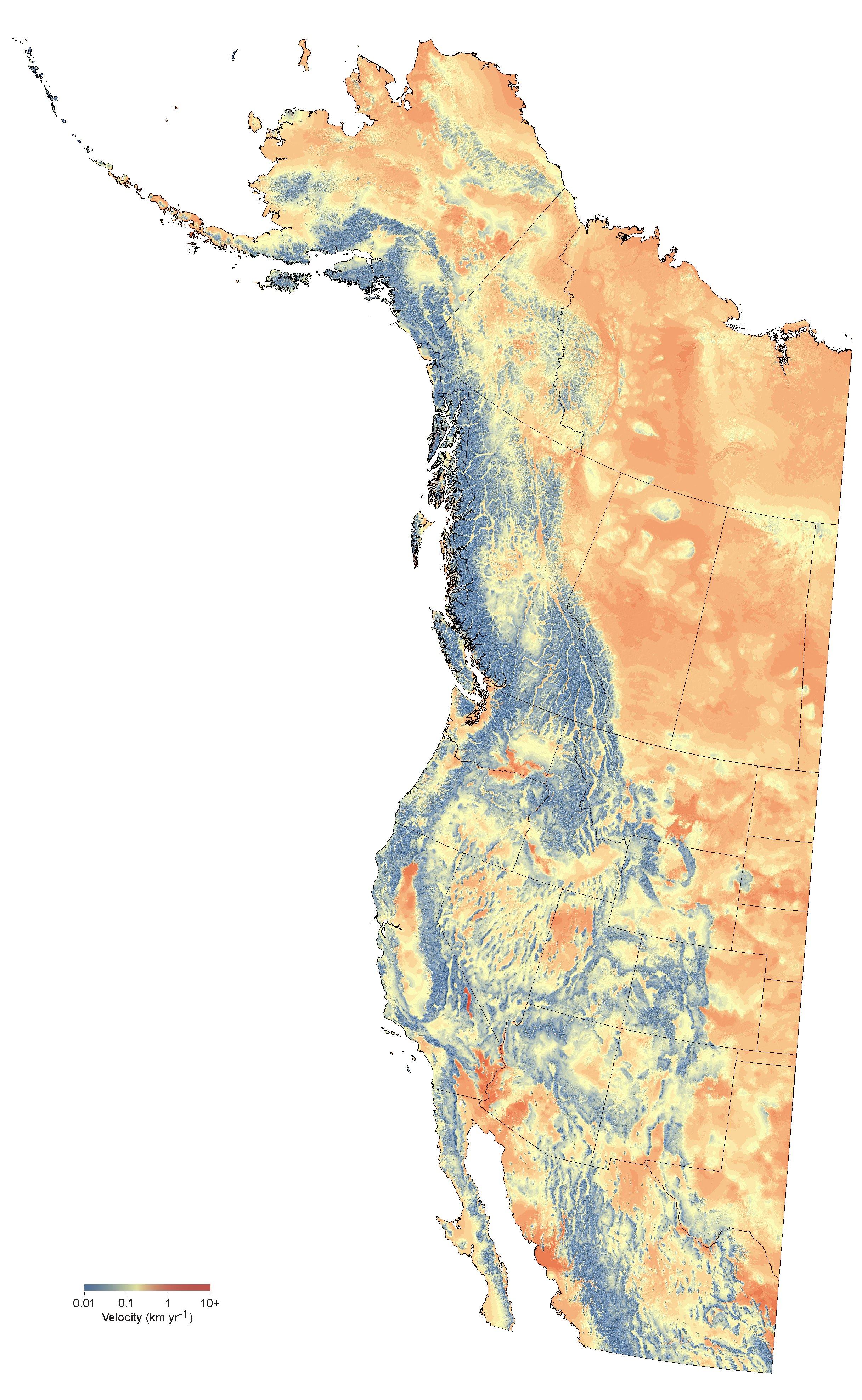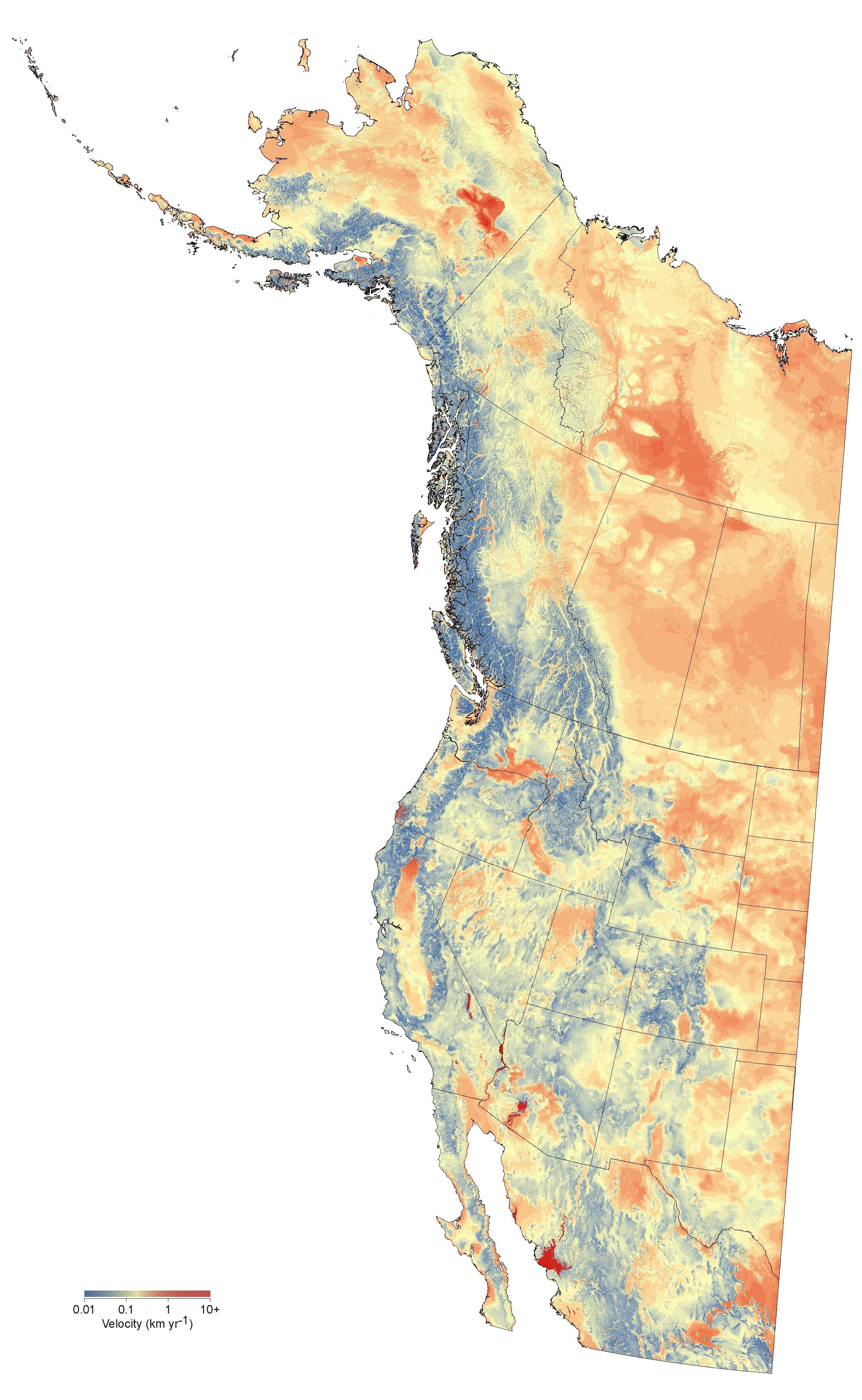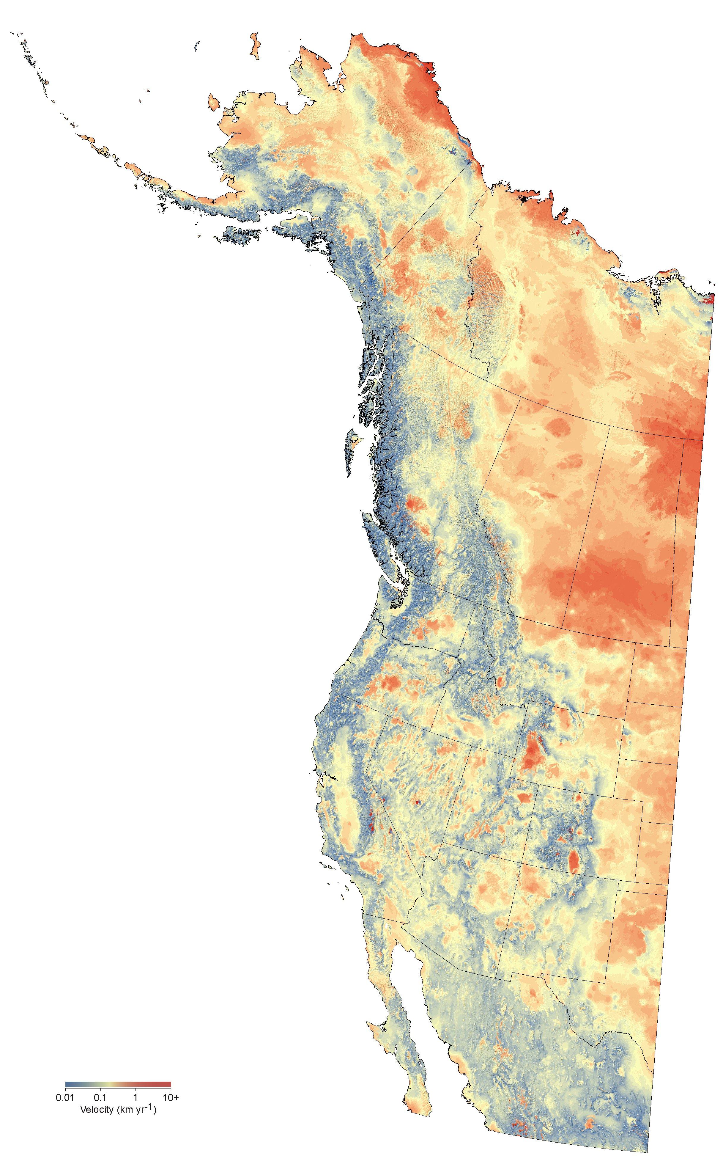 to see high resolution images of univariate and multivariate, forward and reverse climate change velocities for western North America