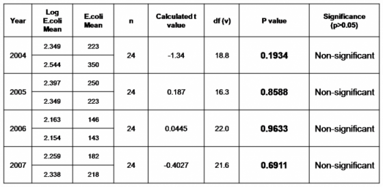 SD=239). In 2006, the mean E.coli concentration in the reach treated