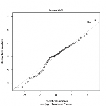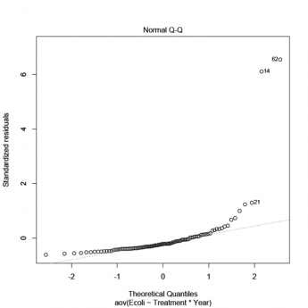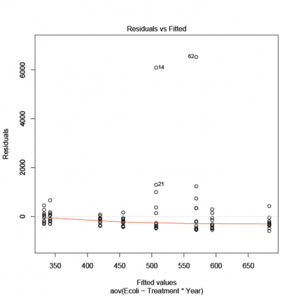 11. Plot of residuals of E.coli concentrations by treatment and year