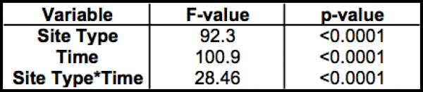 significant effects between site types and between times, but there was