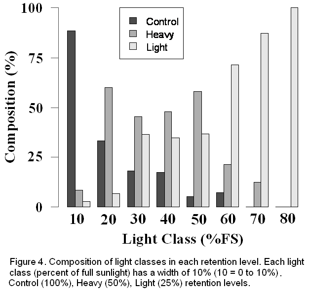unharvested (100%) retained stand is nill. This suggests that light