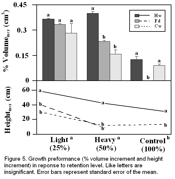 In conclusion, seedlings will increase their volume and height increment with increasing removal of the basal area.