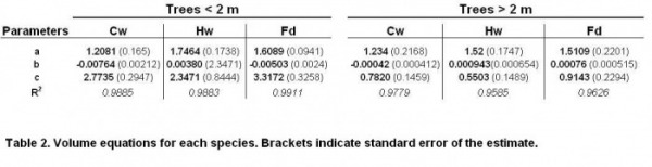 collar diameter (cm) when trees are less than 2 meters. Ht is the