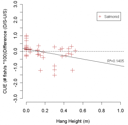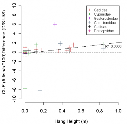 hang height (R2=0.1405). It is possible that culvert hang height is not the strongest predictor of strong swimming fish species catch rates.