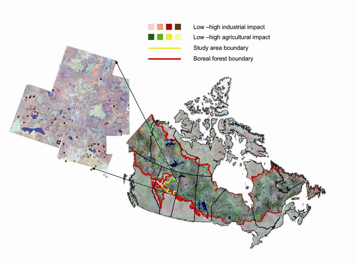 lines, pipelines, hydro lines, railways, forest harvesting and agriculture.