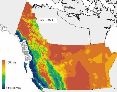 Changes in mean annual Precipitation from 1901-1930 to the 2080s