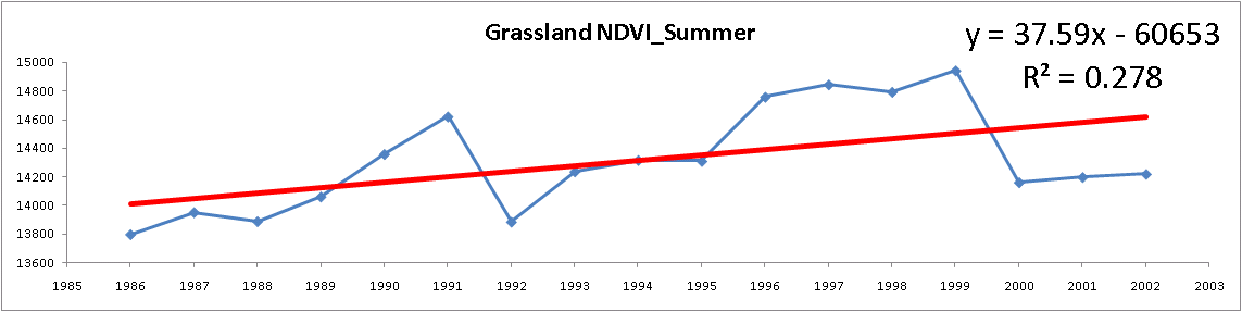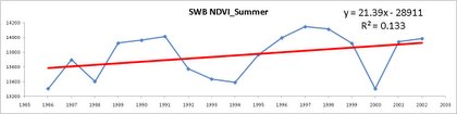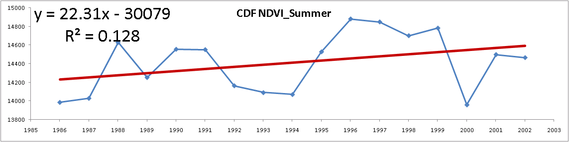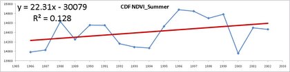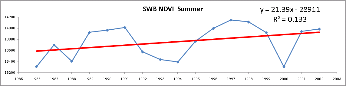 The graph below shows NDVI values for each summer over the studied period (1986-2002) for
