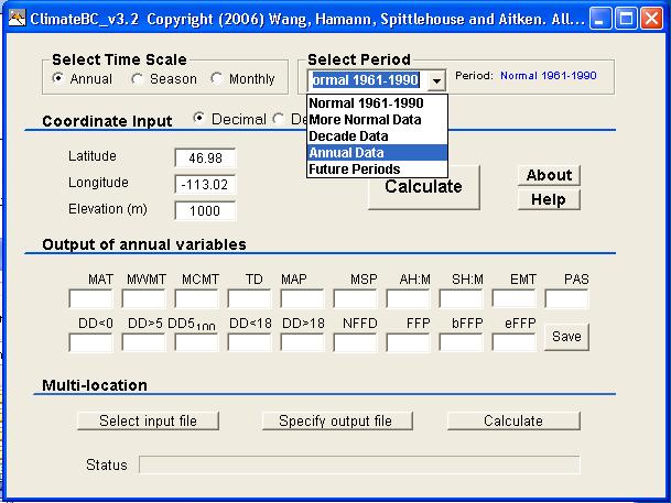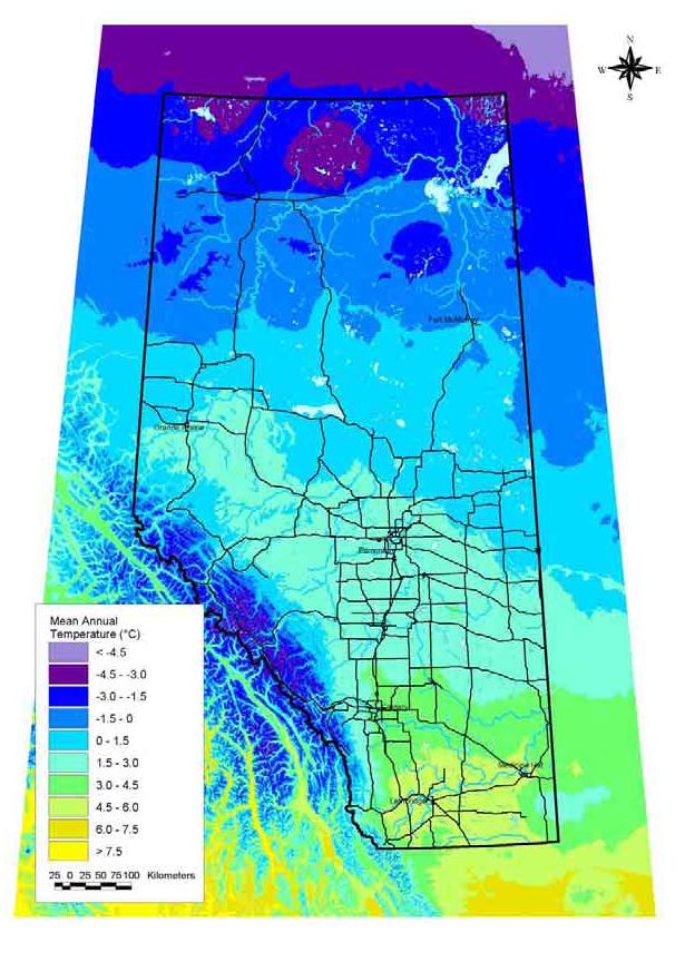 For the period 1985-2002, climate data, such as monthly average temperature, mean annual temperature (MAT), precipitation, degree-days above 5°C etc., were obtained from ClimateBC and ClimateAB programs [5-8]. During preliminary analysis using SAS and ArcGIS I calculated average values of the climatic data grouped by the ecosystems (zone level) for BC and AB. At the end of my preliminary analysis I could created a flat file of climate data parameters over a 20 year period for each ecosystem of BC and AB.