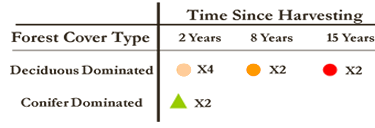 To assess the cover type objective I sampled stands that were 2 years since harvest within both of the forest cover types.