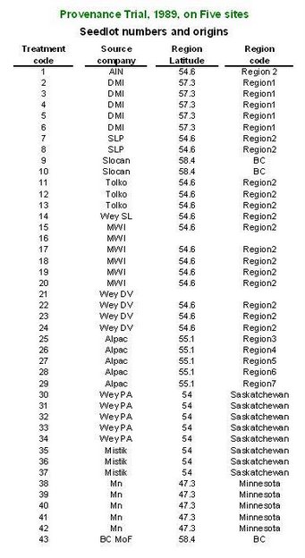 All seedlots are assumed to be pure P. tremuloides and adapted to the region in which they were collected from.