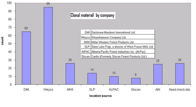 243 aspen trees were used in the various clonal trials. See graph below for source infomation.