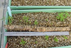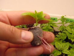 Sprouts are cut from roots and placed in jiffy plugs where they form