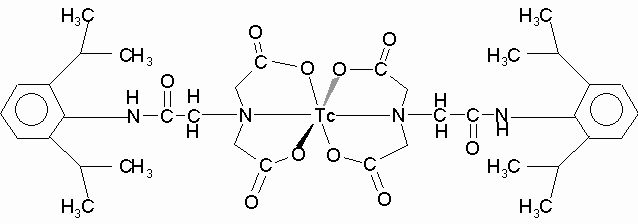 carry Efficient labeling of preformed liposomes was observed in our studies using 99mTc-DISIDA (Figure 1). 99mTc-labeled derivative of IDA (Iminodiacetic acid) was first introduced by Loberg et al. (33) for use as a hepatobiliary imaging agent. Later, IDA derivatives like 2,6-diethyl, p-ethoxy, and p-iodo-IDA were developed and all showed excellent hepatobiliary specificity while differing in blood clearance and urinary excretion (34). 99mTc DISIDA is a newer derivative and has been shown to have better hepatobiliary characteristics (23, 24).