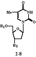 Although AZT and FLT exhibit in vitro anti-HIV activity (10), data from clinical trials in HIV-seropositive patients suggested that FLT induced severe toxic effects such as thrombocytopenia and anemia, providing a narrow therapeutic window (11) that resulted in the termination of clinical trials. 5-O-Myristoyl analogue prodrugs of FLT may have a number of potential advantages relative to FLT, including (i) a reduction in the toxicity of FLT, (ii) two different mechanisms of action for greater therapeutic efficacy, and (iii) the myristic acid analogue moiety does not induce bone marrow toxicity. Further, to treat hepatitis B more effectively, it would be desirable to deliver a larger percentage of the antiviral nucleoside dose to the liver. It was anticipated that the lipophilic 5-O-myristic acid analogue prodrugs (2-8) would undergo extensive hepatic uptake since the non-polar myristoyl analogue ester moiety increases lipophilicity. The parent nucleosides, AZT and FLT, also exhibit in vitro anti-HIV activity (10). Since multiple concomitant viral infections frequently occur, there would be a potential clinical benefit to treat both HBV and HIV infections using a single drug. FLT is one of the most effective antiviral agents in vitro, producing a greater than 90% reduction (0.03 mM) in HBV DNA synthesis. FLT 5-triphosphate is a potent inhibitor of endogenous HBV DNA polymerase, preventing the formation of HBV in HepG2 cells transfected with HBV DNA in vitro (12). In contrast, AZT failed to suppress the replication of HBV in patients with HIV and HBV infection (13-15) and was relatively ineffective against HBV replication in 2.2.15 cells even at the highest possible concentration (20 mM) that did not affect cellular growth (5, 16). AZT had no appreciable effects on HBV DNA replication in HIV patients with chronic hepatitis B infection, during long term therapy (13) and it did not inhibit HBV DNA polymerase as determined from in vitro assays. Since AZT is metabolized in the liver (17), effective levels of the active triphosphate may not be present in hepatocytes even though AZT-triphosphate (AZT-TP) inhibits HBV DNA polymerase in vitro (EC50 = 0.15 mM) (18). The action of AZT against HBV appears to be related to inhibition of HBV DNA polymerase (18). Materials and Methods Chemistry 12-Methoxydodecanoic acid (1) (7), 3-azido-2,3-dideoxythymidine (AZT) (19) and 3-fluoro-2,3-dideoxythymidine (FLT) (10) were prepared according to literature methods. The 5-OH of AZT (1.3 mmol) was esterified using 12-methoxydodecanoic acid (1) (1.3 mmol) in anhydrous benzene (18 mL) in the presence of oxalyl chloride (1.9 mmol) and 4-(dimethylamino)pyridine (DMAP) (1.9 mmol) to yield 3-azido-2,3-dideoxy-5-O-(12-methoxydodecanoyl)thymidine (2) in 56% yield (20). A similar procedure was used for the preparation of the 5-O-myristoyl analogue derivatives of FLT (3-7) (21). Further reaction of 3-fluoro-2,3-dideoxy-5-O-(12-bromododecanoyl)thymidine (3) with sodium azide at room temperature in dimethyl formamide produced the corresponding 12-azido analog (8) (21). In Vitro Anti-HBV Assays Two assay methods were used to determine anti-HBV activity. These two assays differ in the duration of exposure, harvesting time, and the method used to detect HBV DNA (direct beta scanner in NIH method versus dot blot hybridization in our laboratory). The first assay (results shown in Tables 1 and 2) used to measure anti-HBV activity in cultures of 2.2.15 cells was performed by the screening service provided by the United States National Institutes of Health (NIH) (5). Briefly, chronically HBV-producing human liver cells were seeded into 24-well tissue culture plates and grown to confluence. Test compounds were then added daily for a continuous 9 day period. Culture medium (changed daily during the treatment period) was collected and stored for analysis of extracellular (virion) HBV DNA after 0, 3, 6, and 9 days of treatment. Treated cells were lysed for 24 hours following day 9 of treatment for the analysis of intracellular HBV genomic forms. HBV DNA was then analyzed in a quantitative and qualitative manner for overall levels of HBV DNA (both extracellular and intracellular DNA) and the relative rate of HBV replication (intracellular DNA). Analysis of HBV DNA was performed using blot hybridization techniques (southern and slot blot) and [32P]-labelled HBV-specific probes. HBV DNA levels were measured by comparison to known amounts of HBV DNA standards applied to each nitrocellulose membrane (gel or slot blot). An AMBIS beta scanner, which measures the radioactive decay of the hybridized probes directly on the nitrocellulose membranes, was used for quantitative analysis. HBV DNA levels were then compared to those at Day 0 to determine the effect of drug treatment (see Table 1). The second assay used HBV-producing 2.2.15 cell cultures derived from a human hepatoblastoma cell line (Hep G2) together with the dot hybridization technique, as previously described (9). Viral replication (the values are the average of two different experiments) was estimated from the amount of HBV DNA present in the supernatant of the cell culture after incubation with the test compound (10 mg/mL, 19.8-22.0 mM range for 3-7). The data are expressed as a percentage of control values where the cell culture was not incubated with the test compound. The percentage of DNA replication in presence of the test compound was calculated using the following relationship: [Sample (treated 2.2.15 sample) - Negative Control (HepG2)] ´ 100 / [Untreated 2.2.15 Positive Control - Negative Control (HepG2)] = % replication (see Table 2). Cytotoxicity Assay Cytotoxicity induced by the test compounds in cultures of 2.2.15 cells was also determined by the United States NIH (22). Briefly, 2.2.15 cells were grown to confluence in 96 well flat-bottomed tissue culture plates and treated with test compound (in 0.2 mL culture medium/well) as described above. Four concentrations of eac