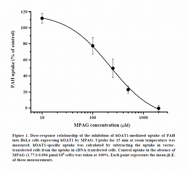 Inhibitory effect of MPAG on the uptake of PAH by HeLa-hOAT1 cells