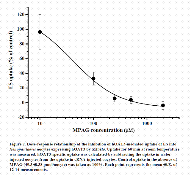 Inhibitory effect of MPAG on the uptake of ES by Xenopus laevis oocytes expressing hOAT3