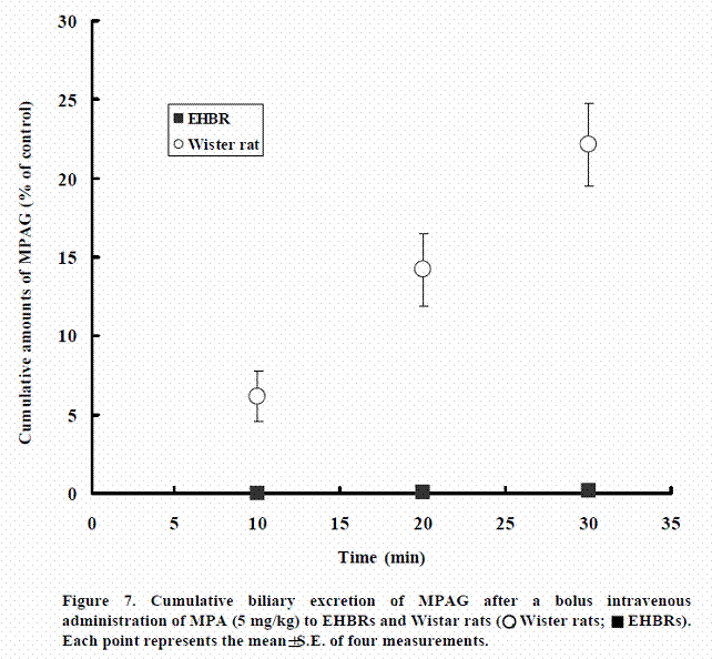 Biliary excretion of MPAG after intravenous administration of MPA to Wister rat and EHBR