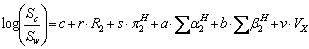 The c, r, s, a, b and v (solvent’s coefficients), which depend upon the solvent system under consideration. Numerical values of the coefficients have been reported in the literature (11) for several water-to-organic solvent systems. Equation 7 could be written as: