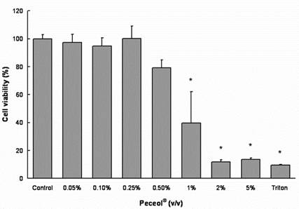 Measurement of toxicity of Peceol® and Gelucire® 44/14 in Caco-2 cells