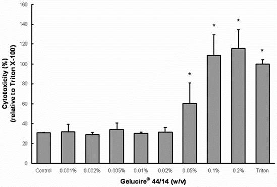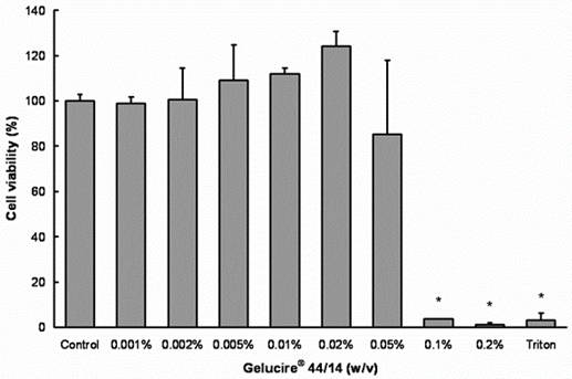 Figure 2. Effects of Gelucire® 44/14 on Cell viability and cytotoxicity in Caco-2 cells.
