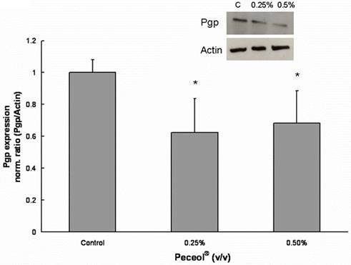 Figure 4. Peceol® inhibits the Pgp protein expression in Caco-2 cells.