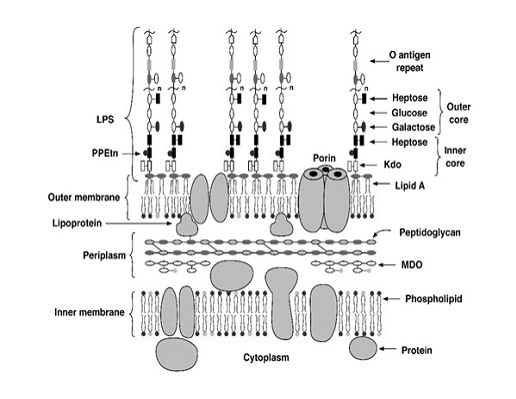 Endotoxins, also called lipopolysaccharides (LPS), are a major component of the outer membrane of Gram-negative bacteria (Figure 1). They are composed of a hydrophilic polysaccharide moiety, which is covalently linked to a hydrophobic lipid moiety (Lipid A) (Figure 2) (3, 6, 24). LPS from most species is composed of three distinct regions: the O-antigen region, a core oligosaccharide and Lipid A (LipA) (Figure 2).