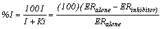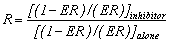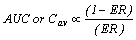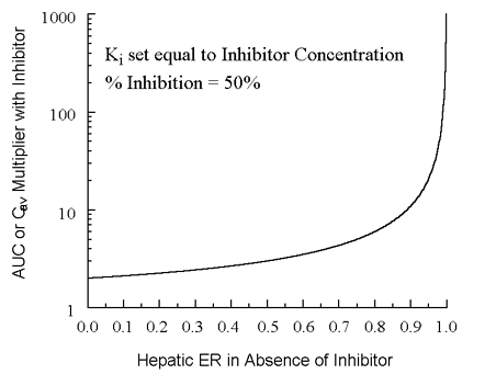 where Ki is the competitive inhibitor constant, and the ER subscript indicates whether ER occurs in absence or presence of competitive inhibitor. Inasmuch as serial in vivo competitive inhibitor concentrations may be sufficiently represented as a constant (e.g., Cav), the ratio of AUC or Cav in the presence of a competitive inhibitor to that in the absence of a competitive inhibitor (R) is given by (1):