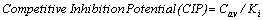 At ketoconazole oral doses of 200 mg once daily, Cav is ~1.0 mg/mL in healthy human subjects (4). At clarithromycin doses of 250 mg po Q 12 hours, Cav is ~0.57 mg/mL in healthy human subjects (5). Using these doses (which may vary, depending on therapeutic considerations), one may calculate a unitless “competitive inhibition potential” (CIP), as follows: