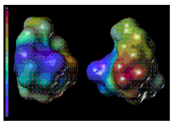 Figure 5: [Panel(a)]. Computer generated structures of RGD (left), and RGD-r1r2 (right) analogs representing the calculated electrostatic (red is most electropositive and blue is most electronegative) potential surfaces of the molecules. For key to structures see Figure 1.