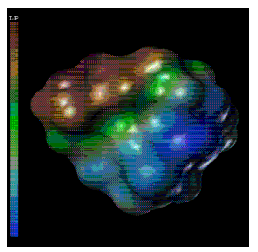 Figure 5: [Panel(b)] Computer generated structure of RGD-r1r2 analog representing the calculated lipophilic (red surface is most lipophilic and blue is the least lipophilic) potential surface of the molecule. For key to structures see Figure 1.