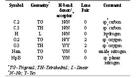 Table 1: Tripos force field atom types employed in the molecular modeling study of arginine-glycine-aspartic acid (RGD) analogs.