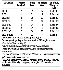 Table 2: Hydrogen bonding ability of arginine-glycine-aspartic acid (RGD) analogs*