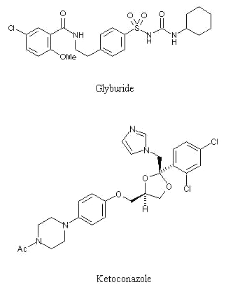 Figure 1. Chemical structure of glyburide and ketoconazole (IS)
