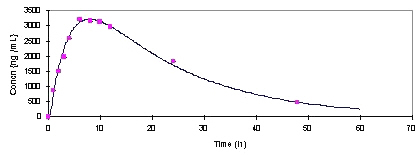 Figure 2: Plasma profile of theophylline in healthy subjects taking single oral dose of TheoDur 200mg (Mean of 12 subjects).