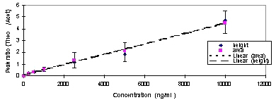 However we used peak height ratios for determination of plasma samples and suitability tests of the method.