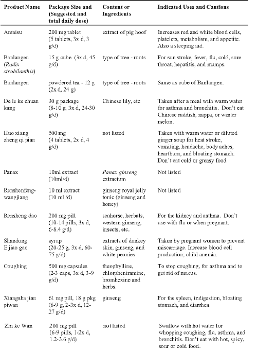 Table 1: The commercially available Chinese herbal products examined and their label information.