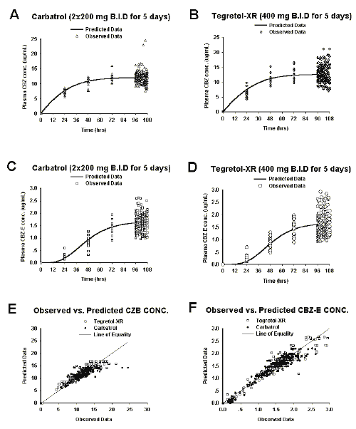 PURPOSE. To model and re-evaluate the pharmacokinetics of carbamazepine (CBZ) and CBZ-10, 11-epoxide (CBZ-E) after 5 day b.i.d. dosing with either Carbatrol® (extended-release beads) or Tegretol-XR® (an osmotic pump tablet, an Oros® tablet) using compartmental method.