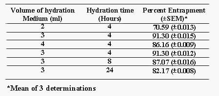 The formulation technique was optimized for hydration medium volume and hydration time so as to get maximum drug entrapment. All the batches were prepared three times on different days to check the reproducibility.