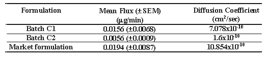 Table 4: Diffusion of drug across human cadaver skin.
