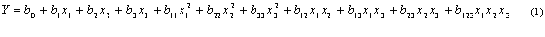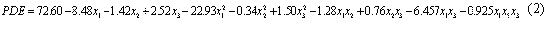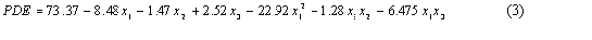 The PDE (dependant variable) obtained at various levels of three independent variables (x1 , x2 and x3) were subjected to multiple regression. A second order polynomial equation 2 (full model) was obtained.