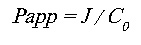Apparent permeability (Papp in cm/s) of each test compound was derived from the fluxes according to the equation: