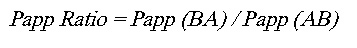 The ratio between the permeability values obtained in transport studies in the (AB) and (BA) directions was calculated according to the following equation:
