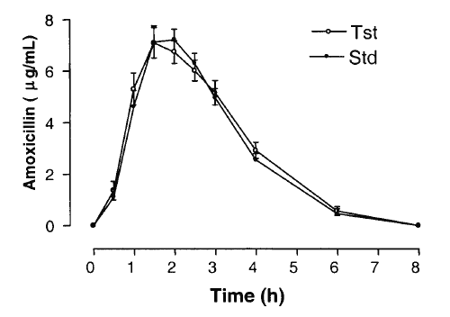 HPLC determination of amoxicillin comparative bioavailability in healthy volunteers after a single dose administration.