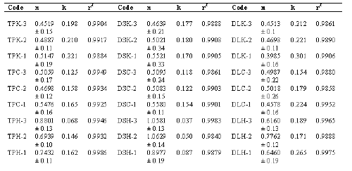Table 2: Value of the release exponent with standard deviation (n ± s.d.), kinetic constant (k) and correlation coefficient (r2).