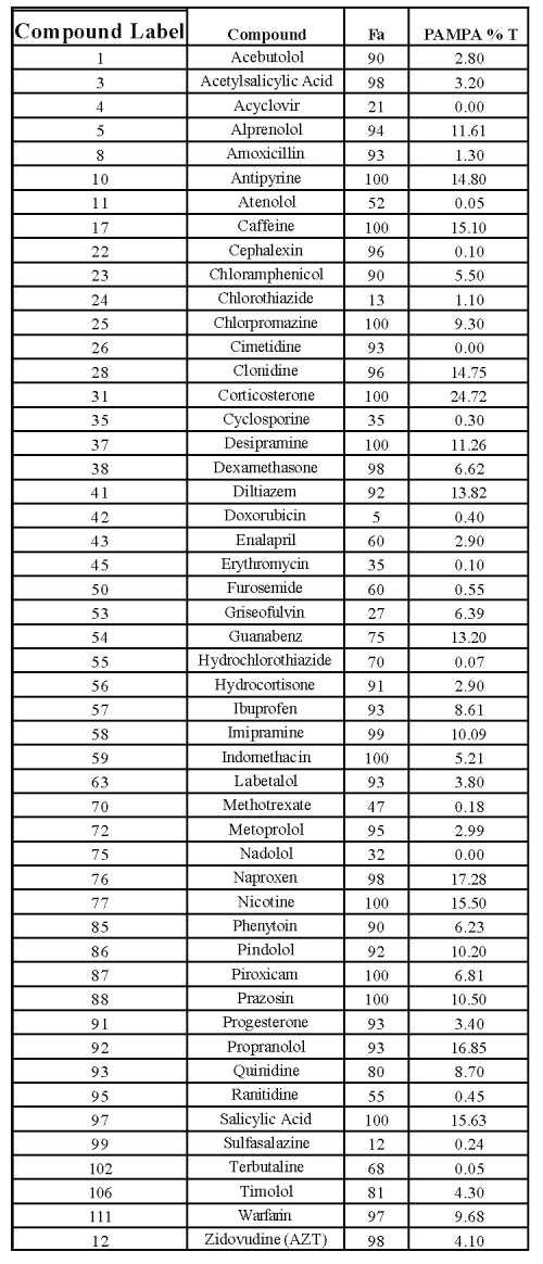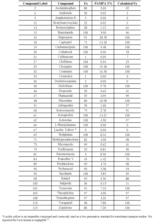 Where Fa is human fraction absorbed, % of T is PAMPA percentage transport and R is the regression coefficient.