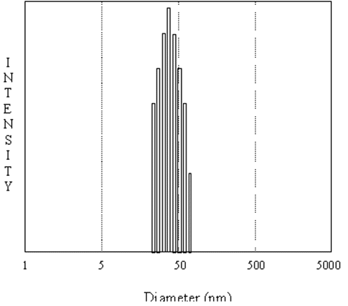 The size of the nanoparticles as measured by DLS was found to be 42.0±2.5 nm diameter (Figure-1).