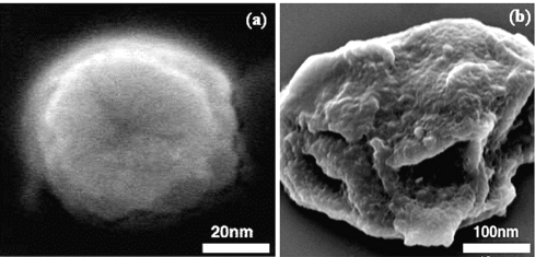 Scanning electron microscopy (SEM) studies. The aqueous dispersion of the particles was put on a glass coverslip and air dried at room temperature. Once dry, the samples were sputter coated with gold before examination with a Hitachi S800 field emission SEM at an accelerating voltage of 10 keV.