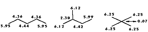 The index presents a large decrease on its value as the atom changes from primary to quaternary as represented in figures 1 and 2, where a series of pentanes and amines are presented along with the R-state values for each skeletal atom.