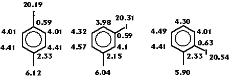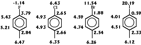 In figure 4 a series of halo-substituted toluenes is shown. The effect of changing the halogen substituents is reflected by the R-state values: the higher values correspondent to the less electronegative groups.