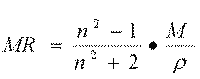 where M is the molecular weight, n the refraction index and r the density, which, at a given temperature, depends only on the wavelength of the light used to measure the refraction index. For a radiation of infinite wavelength, the molar refractivity represents the real volume of the molecules contained in one mole of the substance.